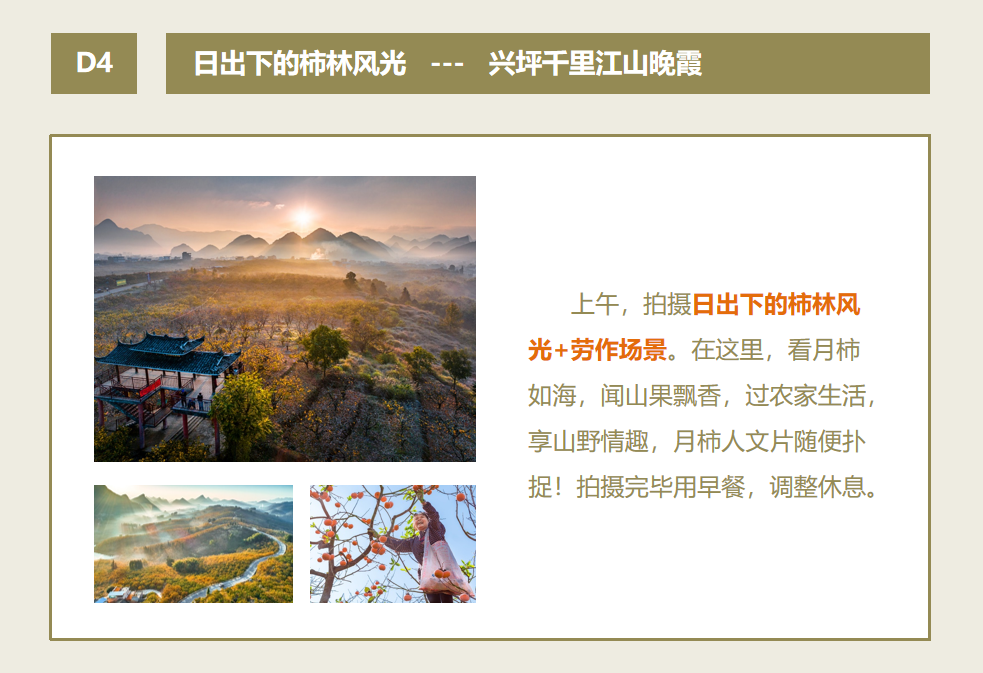 追漓江晨雾漫过碧水青山,拍月柿挂满枝头的红火丰收,探上甘棠古村的千年石板路,访勾蓝瑶寨的瑶族风情,用镜头定格乡村田园的袅袅炊烟与山水秘境的清幽诗意,让每一张照片都盛满湘桂的灵秀与烟火!