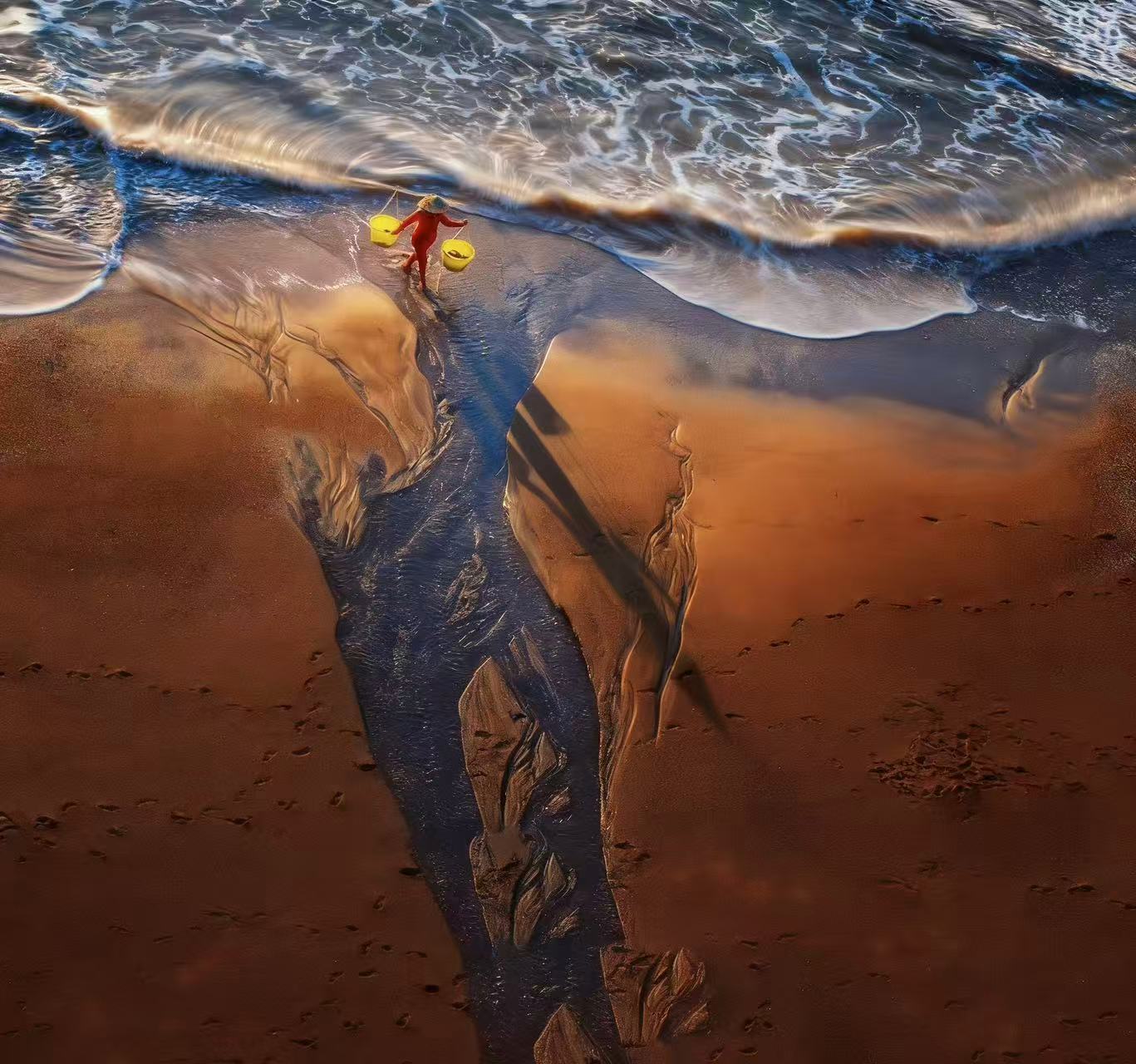 下午出发杨家溪,拍摄飘网。随后去小皓拍摄虎皮沙滩、赶海人文和日落。