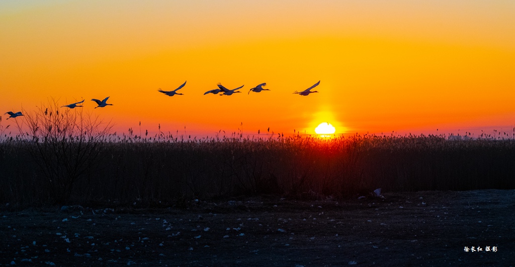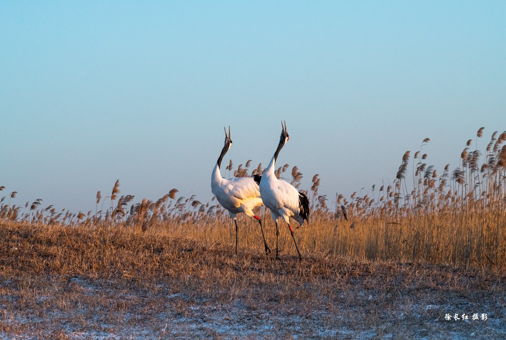 鹤舞蓝天:在扎龙自然保护区的观鹤台,每天有固定的丹顶鹤放飞时间。当饲养员挥动红旗,丹顶鹤成群结队展翅高飞,在蓝天与湿地之间翱翔,可以使用高速快门捕捉它们飞翔的瞬间,记录下优雅的身姿和有力的翅膀扇动姿态。