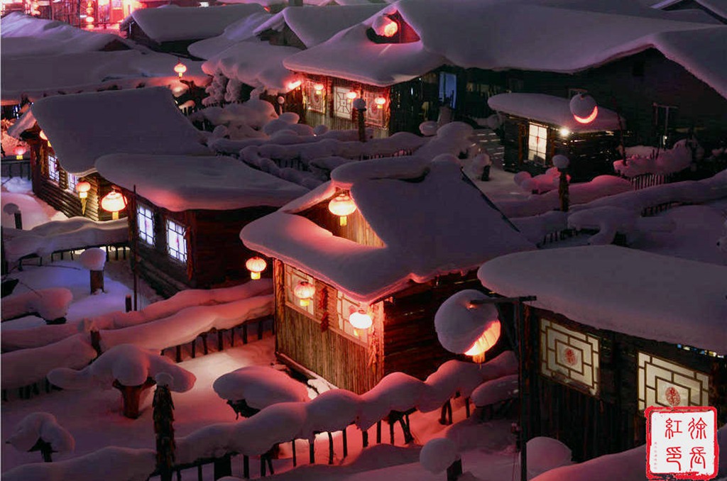 梦幻雪韵:雪乡的雪量大且造型奇特,厚厚的积雪在房顶上形成了独特的雪舌、雪蘑菇等形态。在白天,阳光洒在洁白的雪上,反射出金色的光芒,可以拍摄到雪乡被照亮的每一个细节;夜晚,红灯笼亮起,与白雪相互映衬,整个雪乡仿佛梦幻世界,这时可以用慢门拍摄,记录下雪花飘落的轨迹。