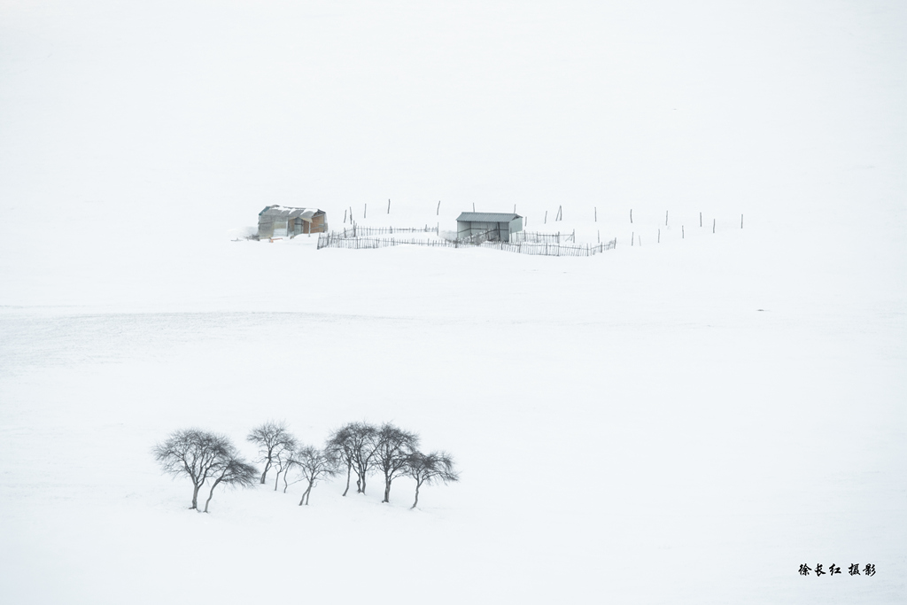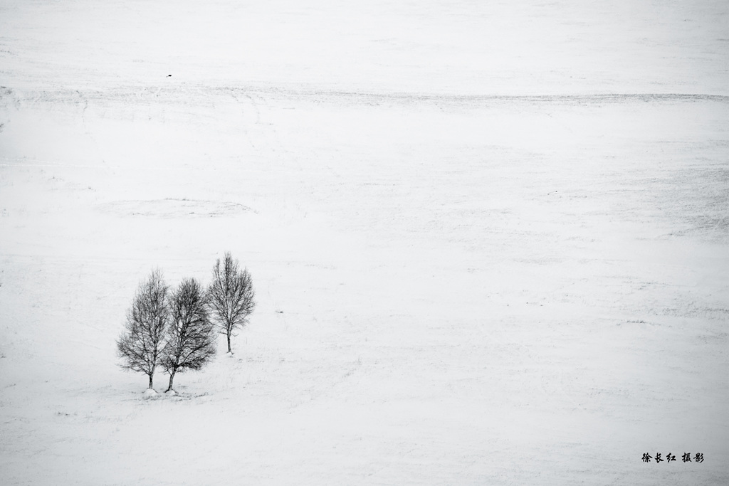 冬季的坝上银装素裹分外妖娆,洁白的大地上稀稀疏疏散落着一棵棵白桦树,就像一幅幅水墨丹青。