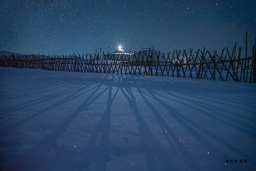 上午:南井拍摄,这里是唯一一个还有树叶的地方褐色的树叶给洁白的雪原增加了颜色和亮点。