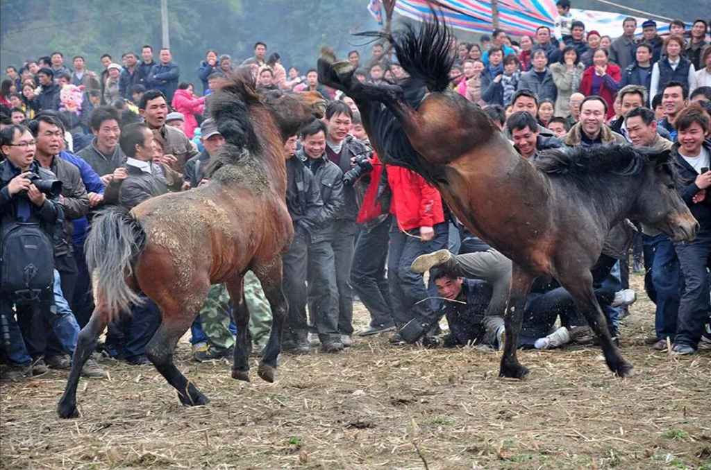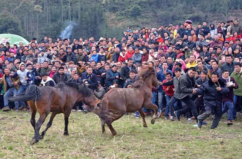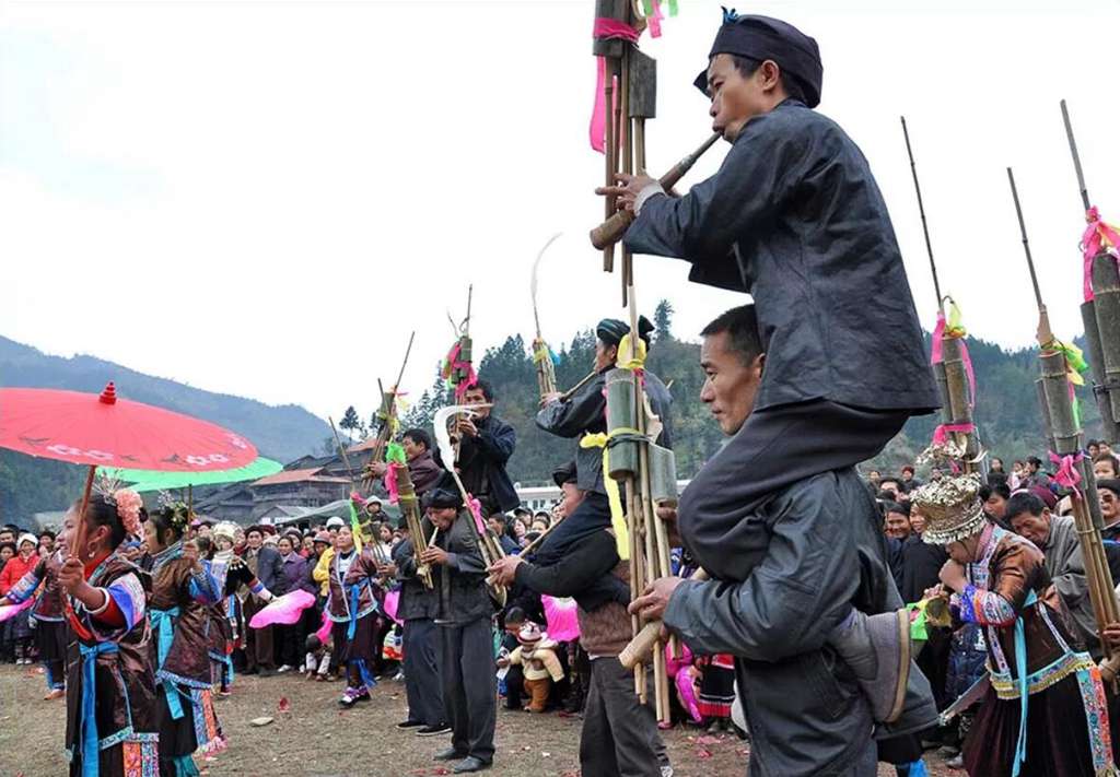 融水苗族坡会,坡会是融水苗族人民盛大的节日。融水安太乡的十三坡是苗族系列坡会群中规模较大的坡会,近20堂芦笙队、上万名苗侗同胞穿上民族盛装,欢聚一堂,吹芦笙、斗马、跳踩堂舞,喜闹新春,祈盼新年风调雨顺、五谷丰登,融水苗族自治县素有“中国芦笙·斗马之乡”的美誉。