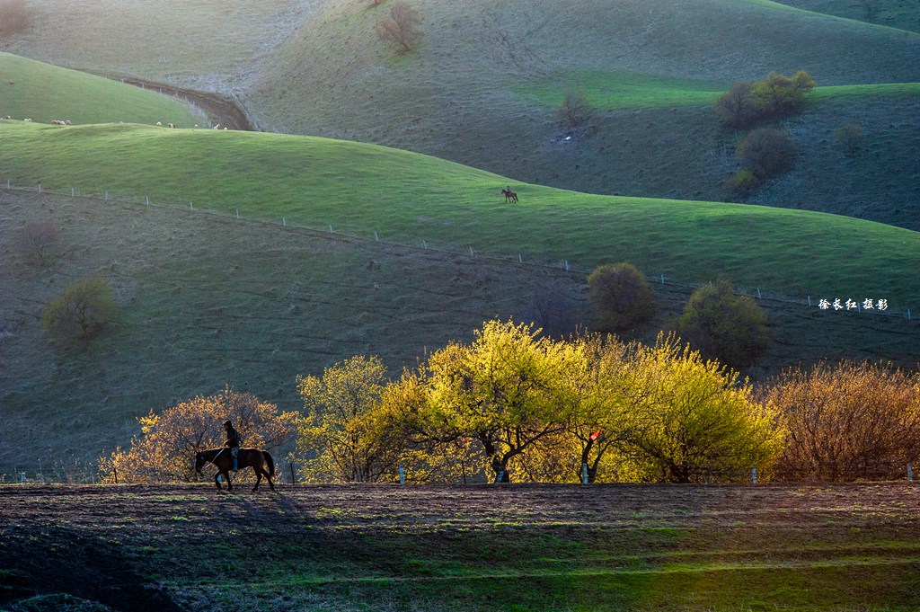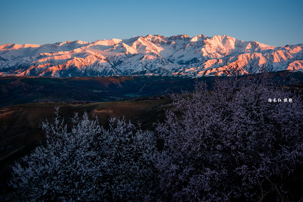 早餐后拍摄雪山雪景,广袤无垠的草原,之后前往大西沟拍摄杏花,今天目的地是新源县。