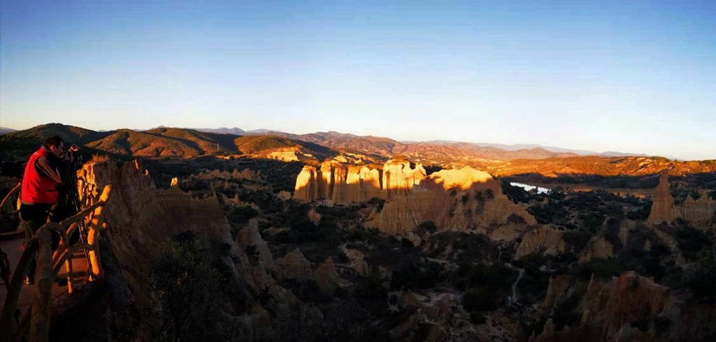 第三天早起拍摄土林晨景,早晨的太阳很给力,唯独缺少了云,有云我们今天就逮着了,绝对的精彩。太阳出来后,大家依次在观景台拍摄一些小景,和土林特写。结束后早餐后,然后出发泸枯湖。