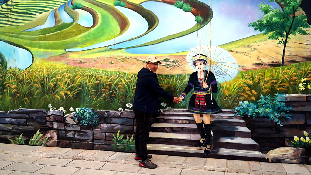 两天的创作,两个日出、日落,让大家拍遍了整个无量山的樱花和鸟儿。墙上的这一个《跳菜》广告也是美美的。
