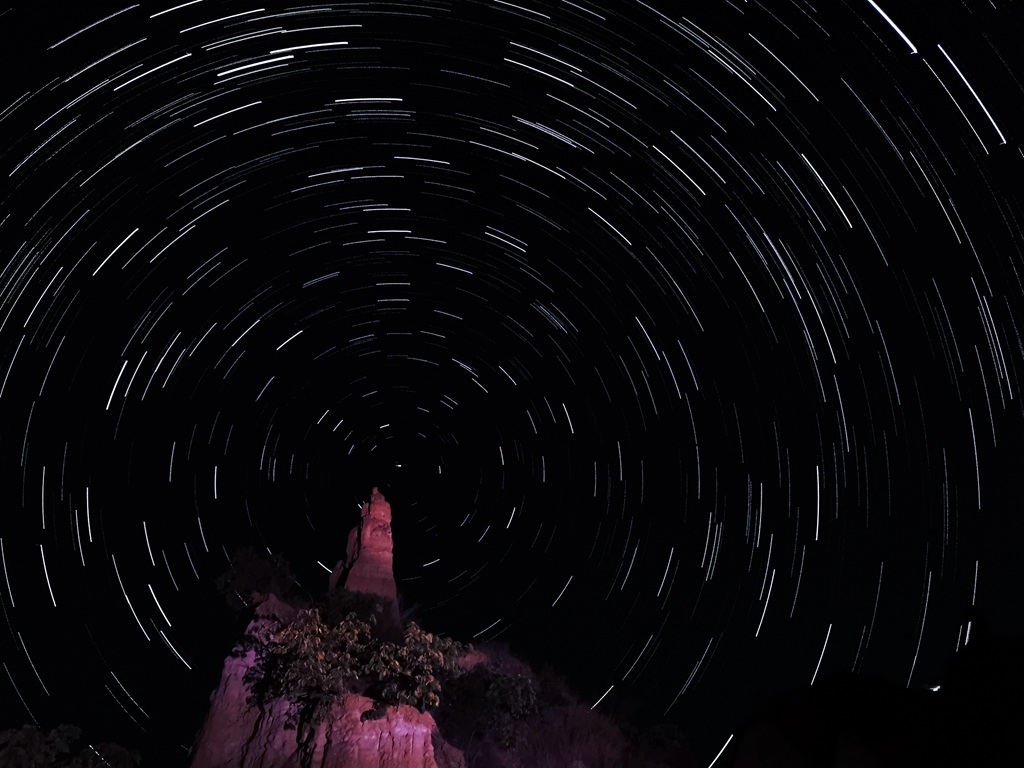 晚餐后,大家休息,在规定的时间内集合,挑灯夜拍。在这里拍摄星轨是非常不错的选择,周边没有什么光源,很适合夜间创作,银河、星轨都非常不错;上面这张星轨是指导王晋朝老师拍摄的,手机摄影,华为手机拍摄,在这里不得不说华为手机的强大,真的很棒。