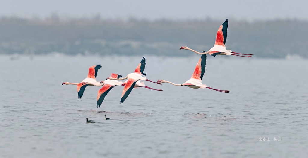 2020年在运城盐湖,6只火烈鸟又如期的回来了
