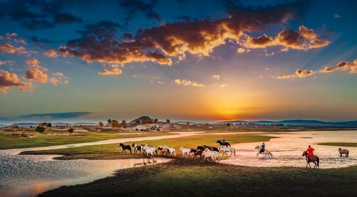 《坝上金秋美、彩霞马儿追》张志军摄影