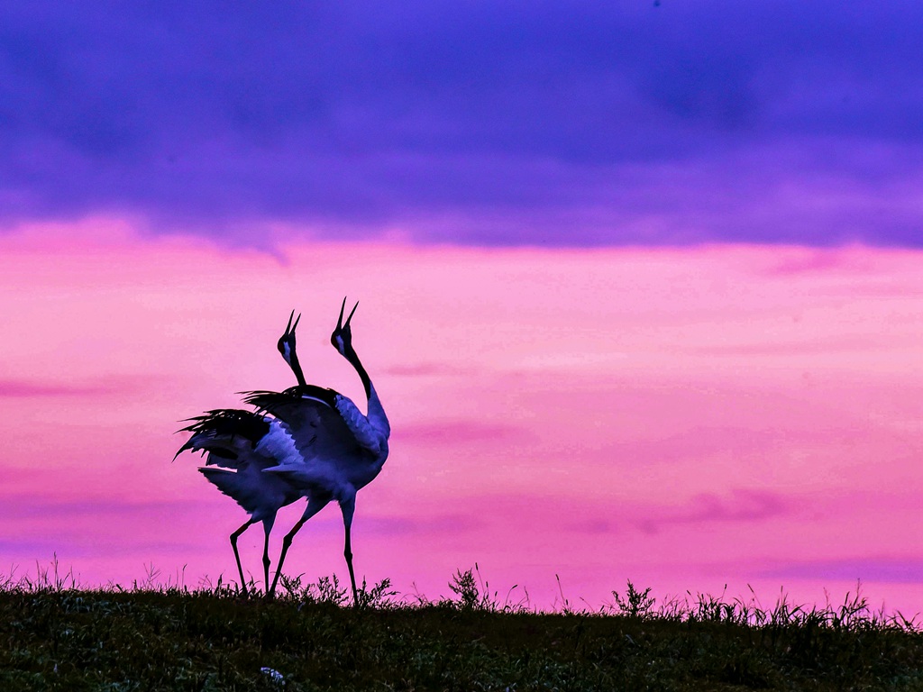 齐齐哈尔扎龙自然保护区丹颈鹤的一天(徐长红作品)