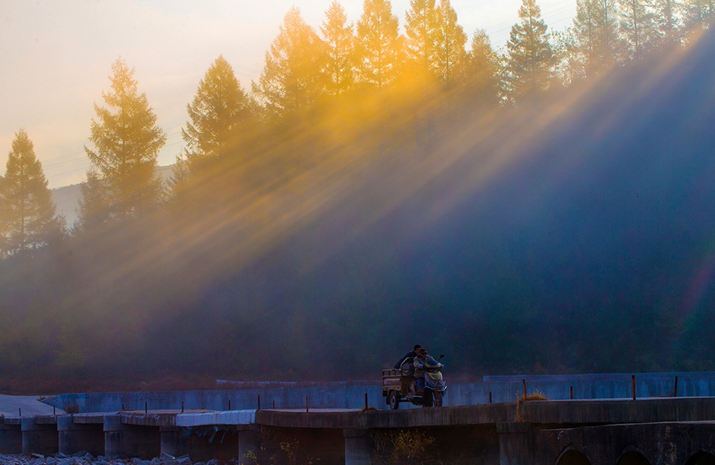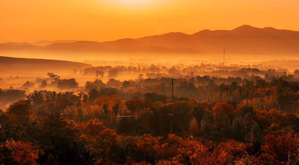 辽宁宽甸晨雾秋色