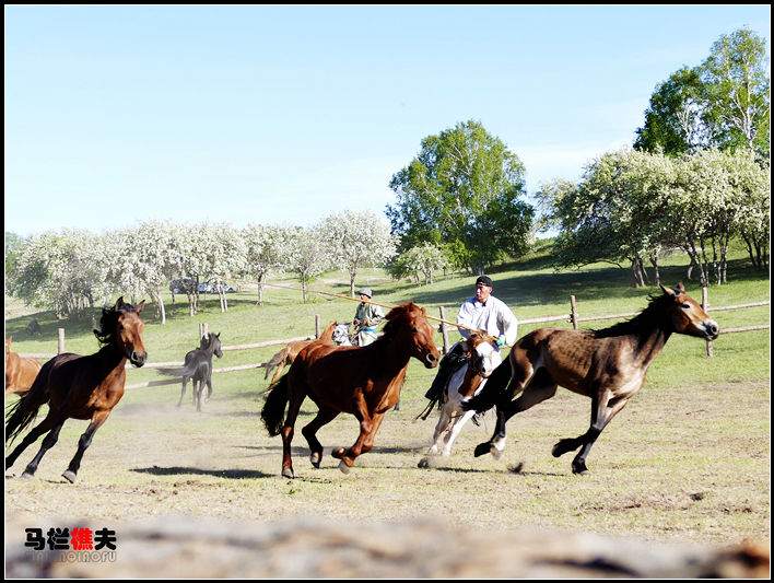 一名名套马手在草原展示套马技艺和草原民俗文化,现场正在套马,演绎着蒙古族的草原文化.....
