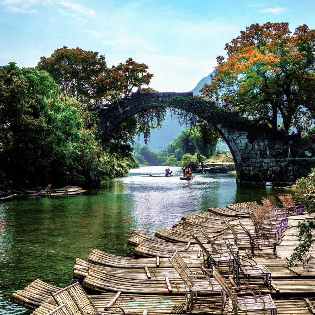 是在遇龙河漂流金龙桥码头的上半段,还没有非常严重的商业开发,现在一些旅行社,酒店都非常推荐这里。遇龙河竹筏漂流,官方是金龙桥起点,终点工农桥,中间分成几段,这里是遇龙河的水源头,也可以乘坐竹筏,撑竹筏的船夫还比较少,但是价格不便宜,都是当地人的私筏。富里桥位于一个小村子里,车要在乡间小路上绕一会才能达到,约半个小时。