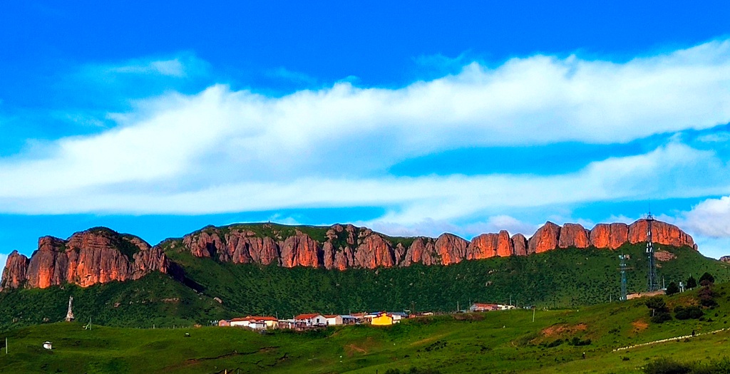 红石崖海拔1752.5米,陡然矗立的石崖一日三变,夜晚为黑色,早晨为青色,下午尤其是傍晚晚霞映照时,呈红色,故名“红石崖”,已经是当地著名的地质景观,