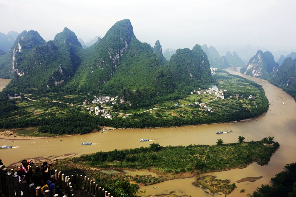 漓江的景色不只是单单的几个点,她的美是连绵不断的,是山水融合的辉映,是光与影无穷的变化,烟与雾的升华,百里漓江水平如镜,两岸的山峰层峦叠嶂,村庄的存在为这幅山水画卷增添了人间烟火的气息。