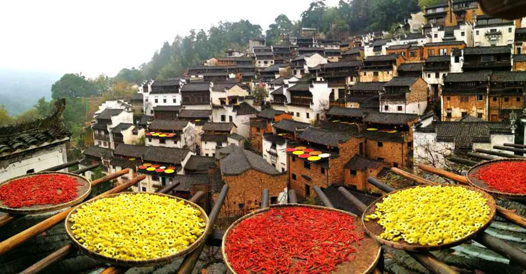 古时徽商出门在外,要求食物易保存携带,这就使得徽州的食物制法会兼顾到储藏性。而“晒”是气候温润的皖南储存食物的方式之一。在晴朗的天气里将新鲜的食材或装竹篾或搭竹架,迎着太阳的干燥与温暖一点点驱散水分,同时也成就了更浓郁长久的美味。