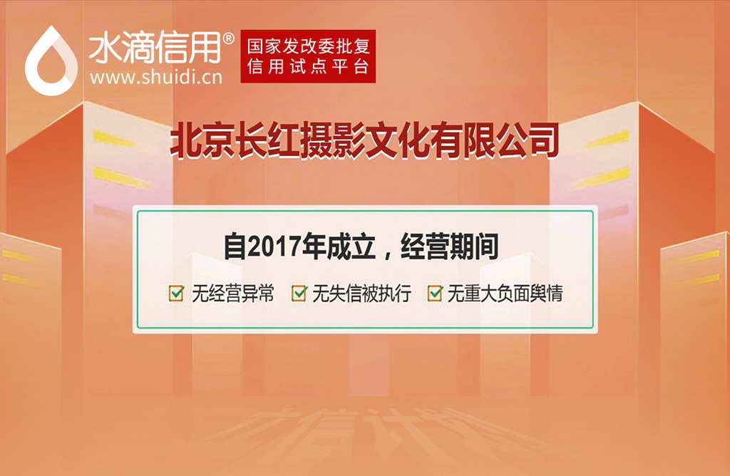 北京长红摄影文化有限公司获水滴信用“立信企业”荣誉称号,360可信百科获国家发改委批复信用试点平台。