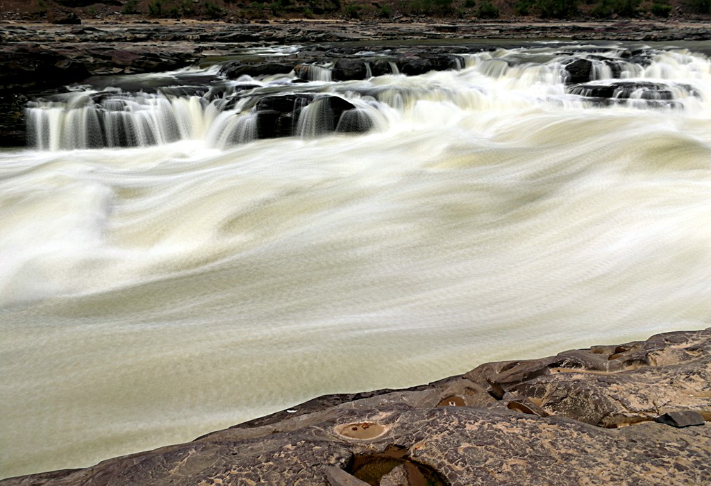 秦晋峡谷流域的暴雨,降水面积大,历时较长,降雨强度也较大,一日最大降雨量可达200—300毫米,是黄河中游洪水的主要来源区之一。黄河中游洪水的特点是洪峰高、历时短,过程线为高瘦型。由于该区主要属于黄土丘陵沟壑区,地表起伏大,集水时间短,暴雨过后水沙俱下进入黄河,形成含沙量极高的洪水暴流,对河床具有很强的侵蚀力。据观测:洪水期壶口瀑布..