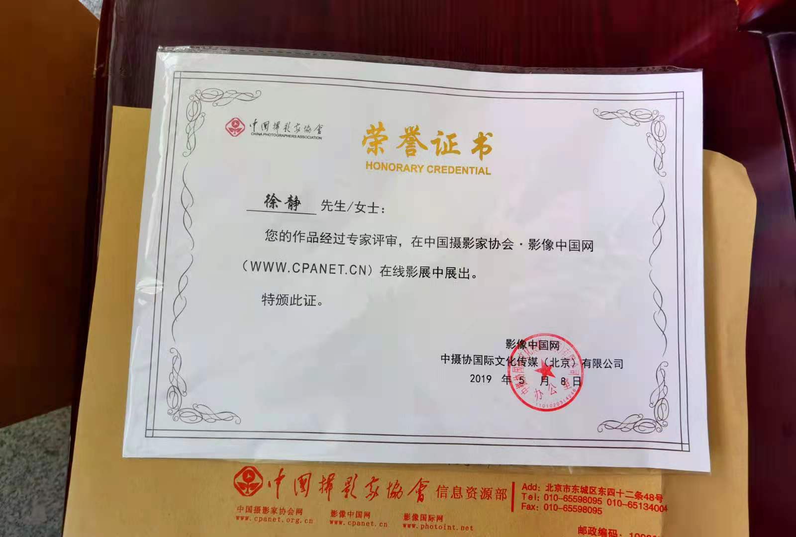 恭喜辽宁徐静老师收到中国摄影家协会《在线影展》荣誉证书