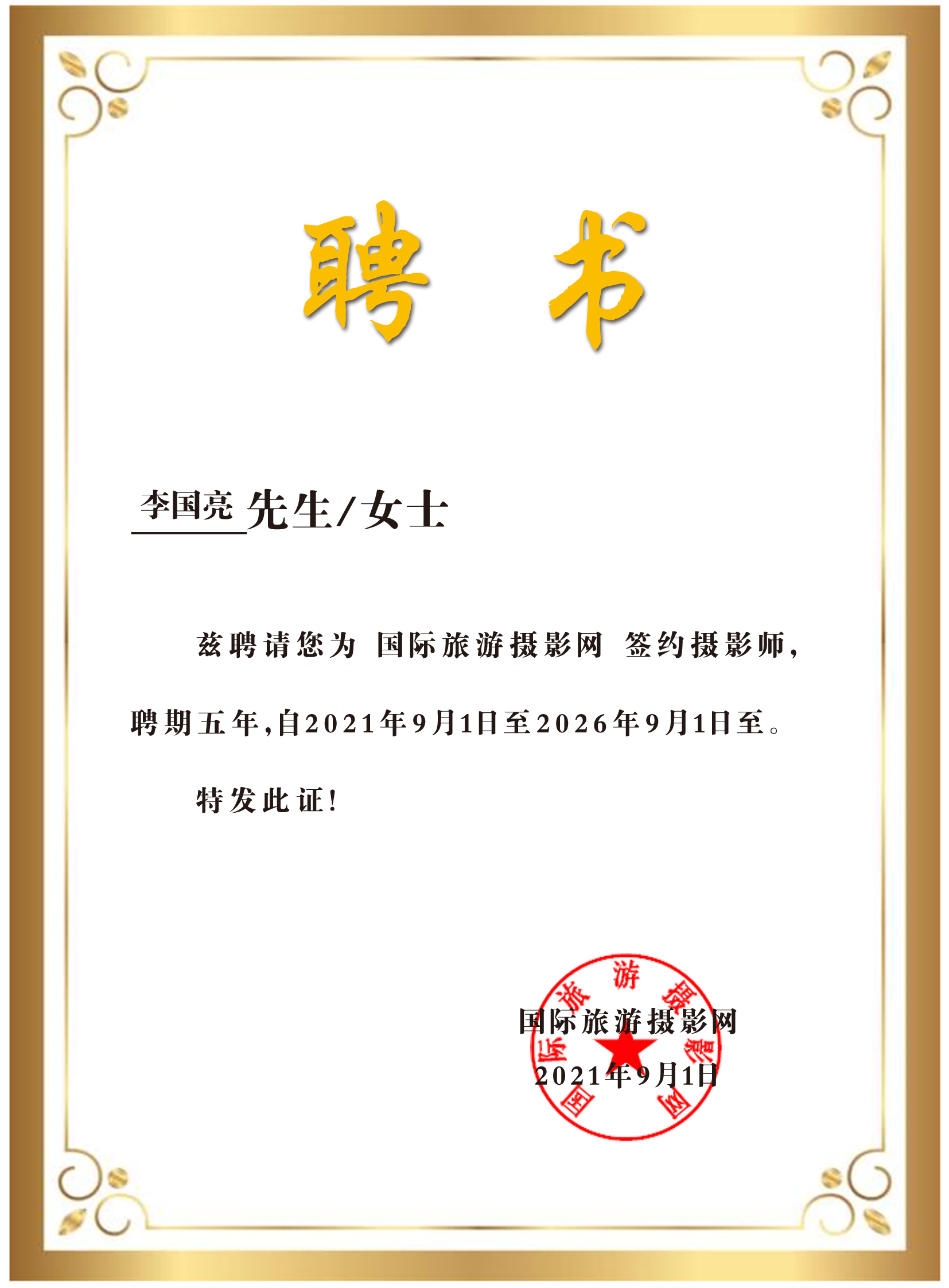 恭喜李国亮老师成为国际旅游摄影网签约摄影师