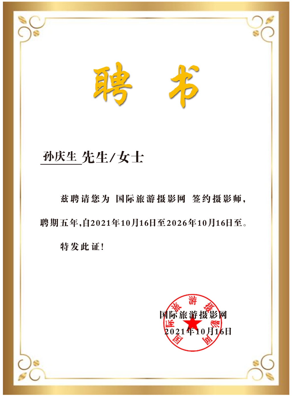 恭喜孙庆生老师成为国际旅游摄影网签约摄影师