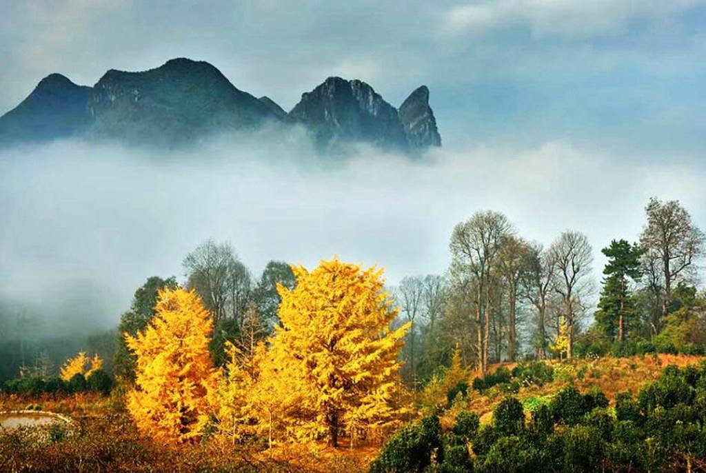 海洋银杏林林区面积4平方公里,树龄一般为30-50年,林冠平均高度13米,树干直径0.5米,其中有50多万株年代久远的银杏树,最古老的一株已有500多年历史,百年以上的便有1.7万多株,最大的“白果王”树高达30米,树干需6人合抱。像这样成片成林的银杏林景区全国罕见,广西更是绝无仅有。金黄的世界里,延续着童话般的梦想,那便是深秋的海..