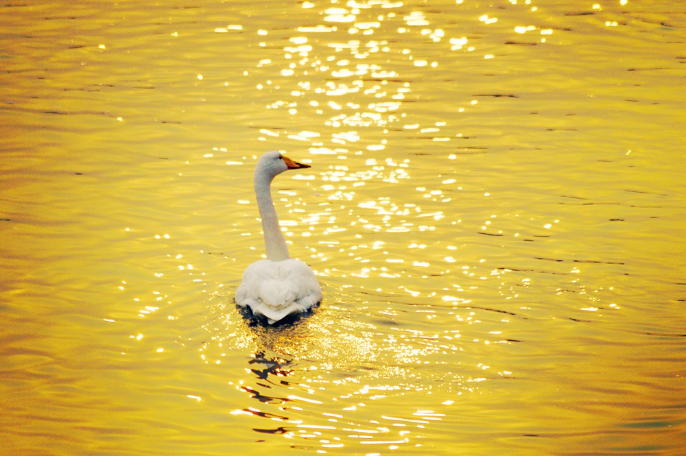 大天鹅(学名:Cygnus cygnus )别名天鹅、咳声天鹅、白天鹅、黄嘴天鹅、鹄、白鹅,属于雁形目鸭科,英文名whooper swan。体重约10千克,体长达1.5米,全身的羽毛均为雪白的颜色,只有头部和嘴的基部略显棕黄色,嘴的端部和脚为黑色。分布于北欧、亚洲北部,越冬在中欧、中亚及中国,是中国国家二级保护动物。