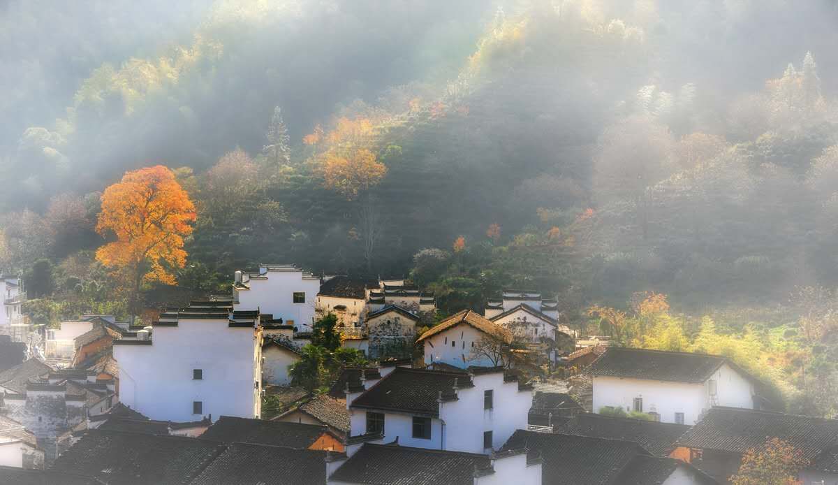晓起的美,不止于它春秋两季的花海,还在于它错落的颇具明清建筑风格的村屋。老树携古屋,碧水环绕,花海点缀,漫步于青石板道,虽隔百年,却有访古之感。想要在晓起花海拍出美照,可以试试把成片的皇菊虚化,让画面点缀星星点点的金黄,配着远山近屋,营造出不一样的效果。