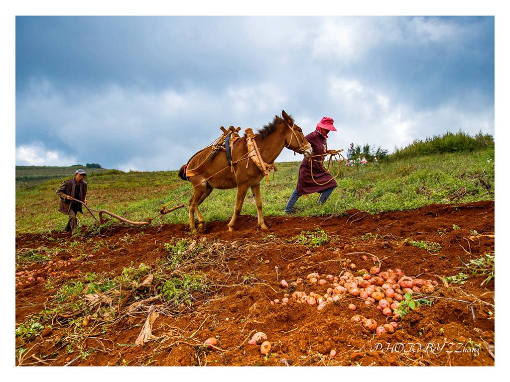 五月 红土地呈现四种颜色:红色的土地,金黄色的小麦,青稞,绿色的洋芋苗。