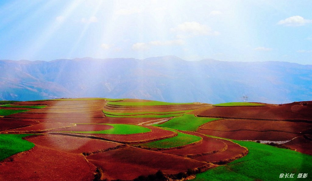 昆明东川红土地被誉为“上帝遗落的调色板”,堪称是全世界除巴西里约热内卢外最有气势的红土地。 如果说巴西的红土地气势磅礴令人震撼,那么东川的红土地则是另一番壮美中又添柔情的景象。