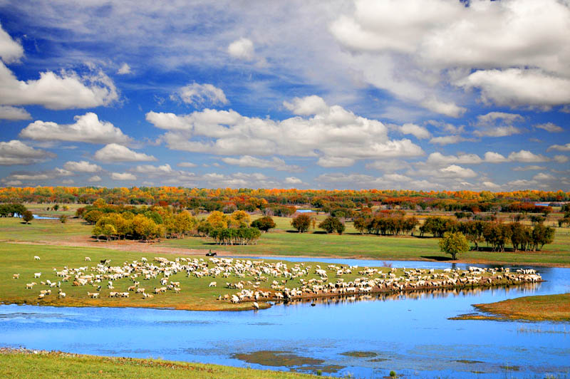 沿途欣赏老舍笔下的天下第一曲水——【莫日格勒河】,成群的牛羊点点绽放,点缀在牧野间,仿佛一幅油画。享受的风景在路上【越野车穿越草原腹地】,这里有草原最秀美的风景,马群、羊群、就在你周围吃草、漫步,蓝天的白云在你头顶飘过;