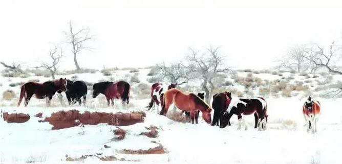 初冬的内蒙古锡林郭勒盟草原,是大雪铺盖草原的季节,整个原生态草原,丛林,沙漠,都是洁白无暇,成群的骏..