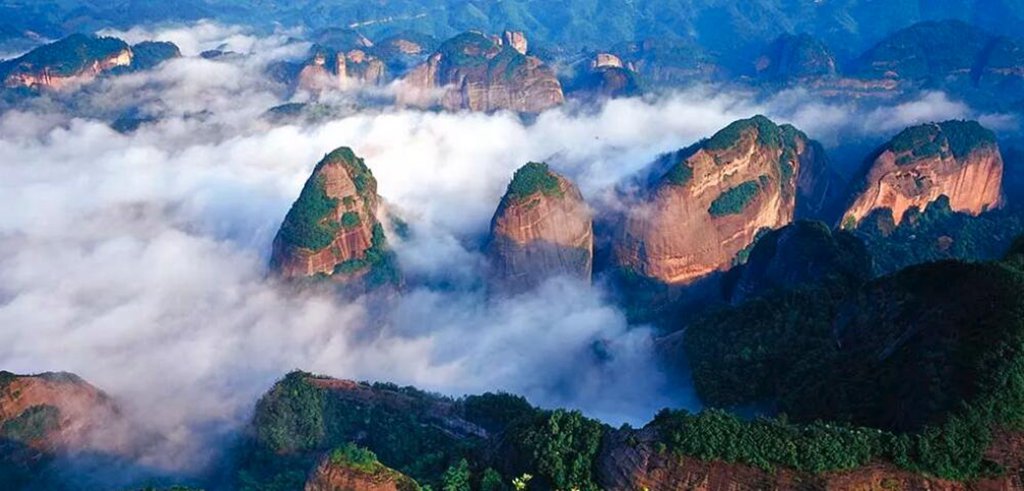 崀山八角寨 曾被《中国地理杂志》之《选美中国》板块评选为中国最美丹霞,被誉为崀山之魂的八角寨,是崀山风景区核心景点之一,坐落在湘桂边陲的湖南省新宁县崀山镇崀山景区境内。主要景点有八角寨、龙门、巴掌岩、云台寺、龙头香、鲸鱼闹海、奕仙台、药王殿等。
