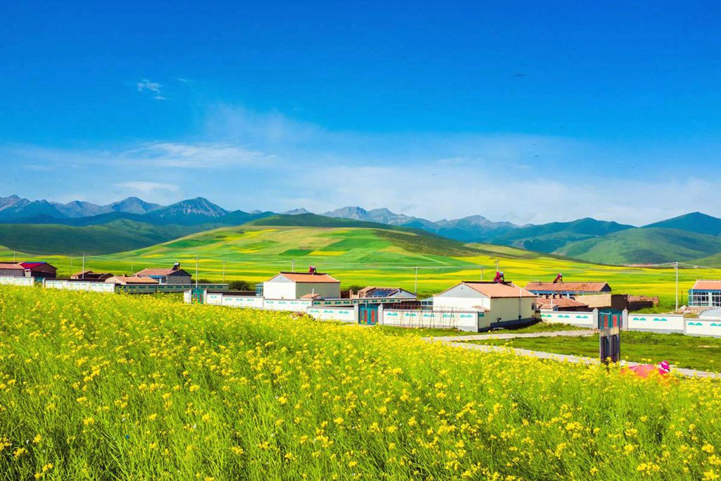 6月份的景色已经很美了,气温回升,草原已经绿了,每年夏季,青海湖绿草如茵,天高海阔,牛羊成群,野花繁盛,......微风吹来,会使人产生返璞归真、如入梦境的感觉。著名的大马营草原,地形平坦、水草丰美、蜚声中外的远东第一大牧场--山丹军马场就建在这里。每当夏季开满了金色的哈日嘎纳花,整个草原一片金黄。温情厚道的尧熬尔牧人驮着自己的白帐..