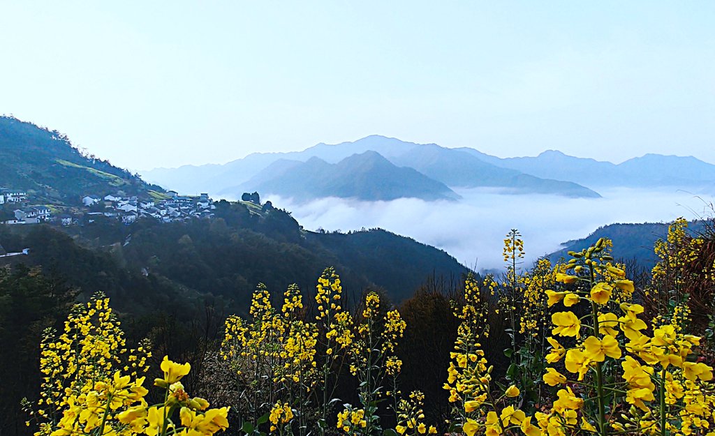 每年三四月,黄山的乡村田野、山坡村头, 就遍地金黄,其间夹杂红的、绿的各种杂花, 整个徽州大地,数十万亩的花海美不胜收。